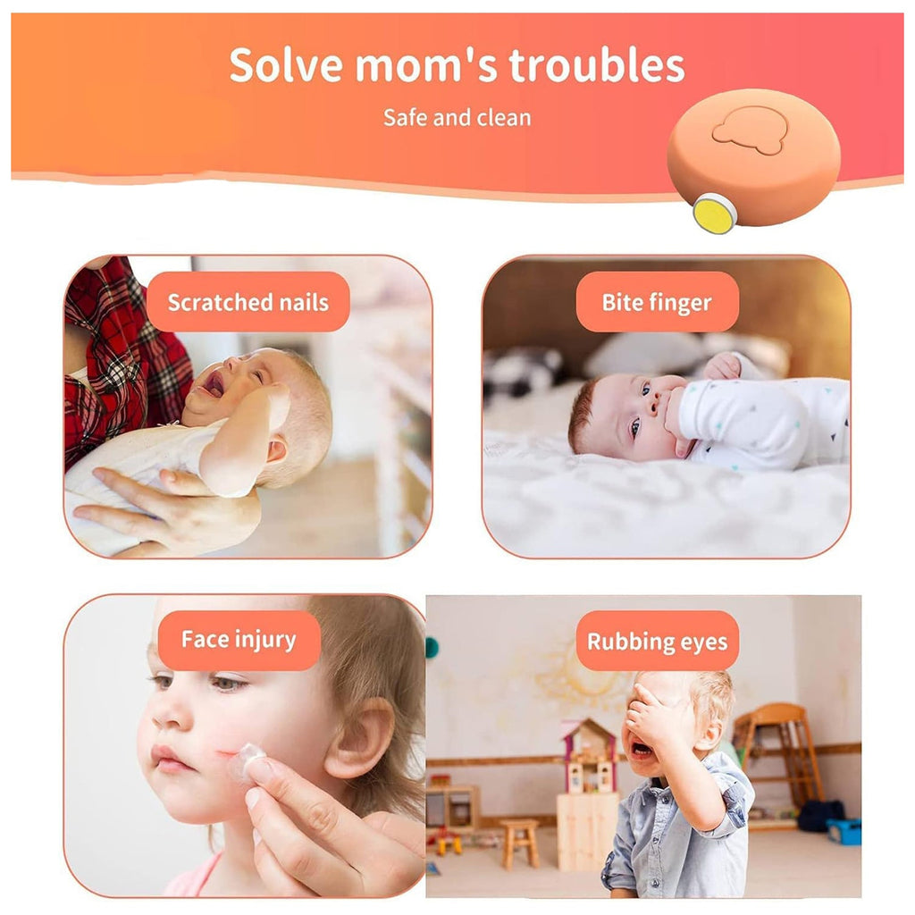 This Electric Baby Nail Trimmer and Manicure Set is designed to make baby nail care safe, gentle, and effortless. Unlike traditional nail clippers, this electric nail trimmer uses soft, cushioned grinding heads that gently file nails without harming delicate skin. The whisper-quiet motor ensures stress-free grooming even while the baby is sleeping. With multiple interchangeable heads of varying textures, this manicure set grows with your child — suitable for newborns, infants, toddlers, and even adults. Its compact bear-shaped design makes it easy to hold and convenient to carry for travel or daily use, ensuring hygienic nail care anytime, anywhere.
