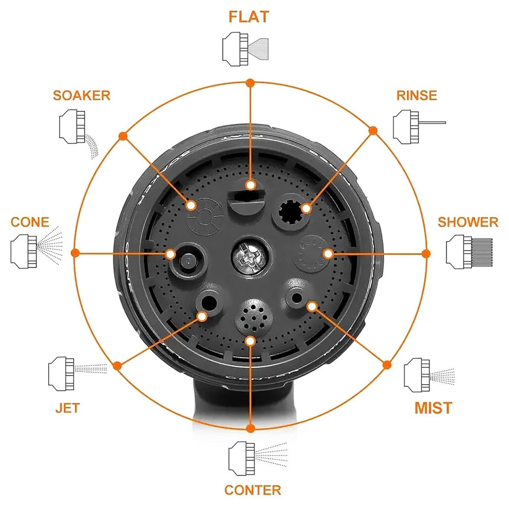 • Multi-pattern dial (e.g., Mist, Shower, Cone, Jet & more) for plant care, rinsing, and cleaning