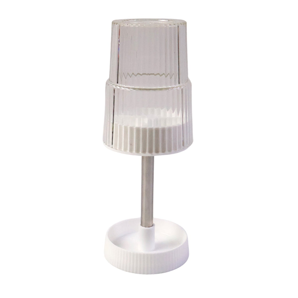 Design: Vertical stand with divided rotating tray and separate ribbed tumbler