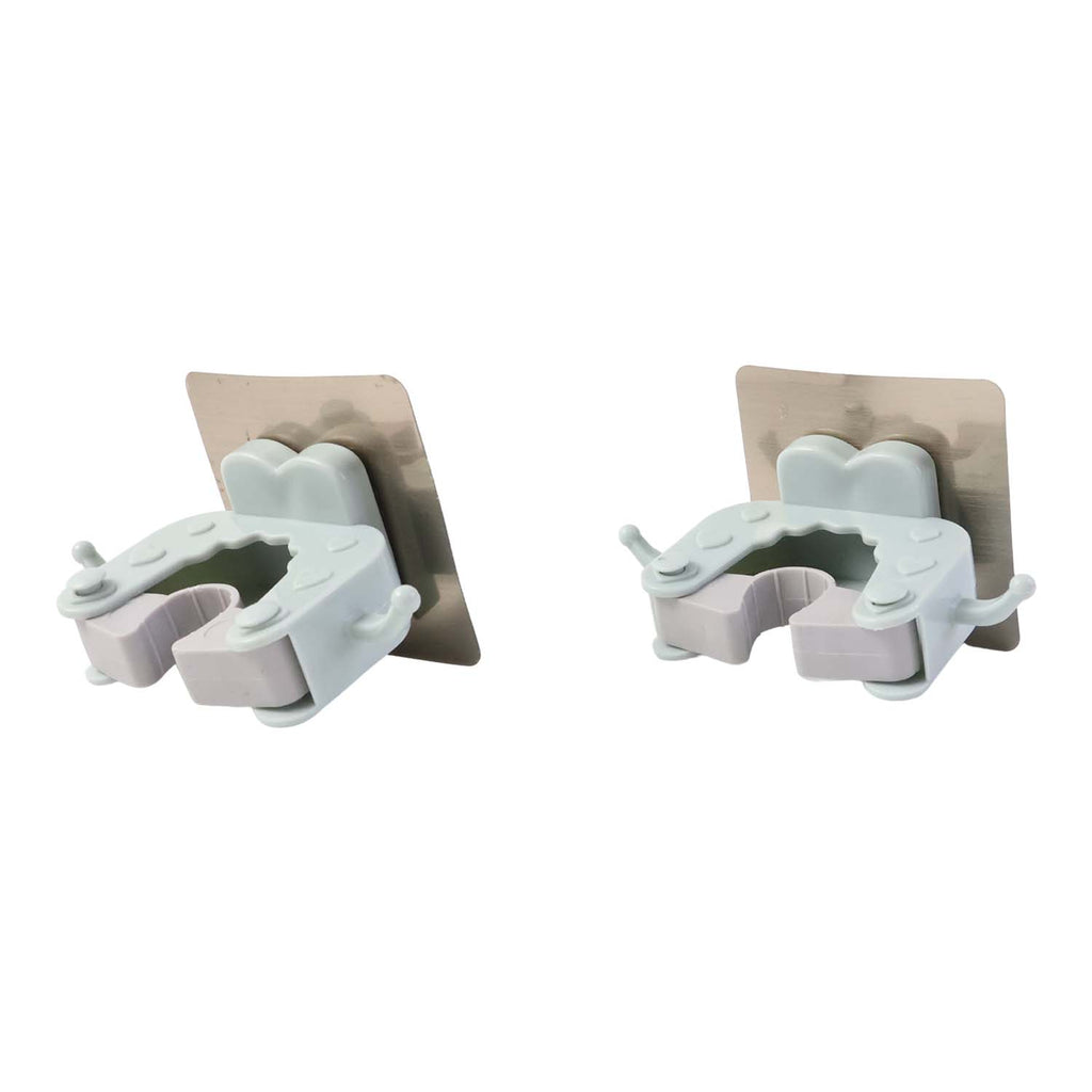 Wall Mounted Mop and Broom Holder Clip – Heavy-Duty Self Adhesive Cleaning Tool Organizer with Hook for Home, Kitchen & Bathroom(2 Pc)