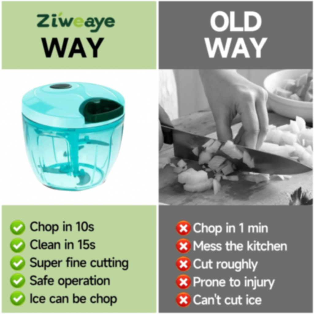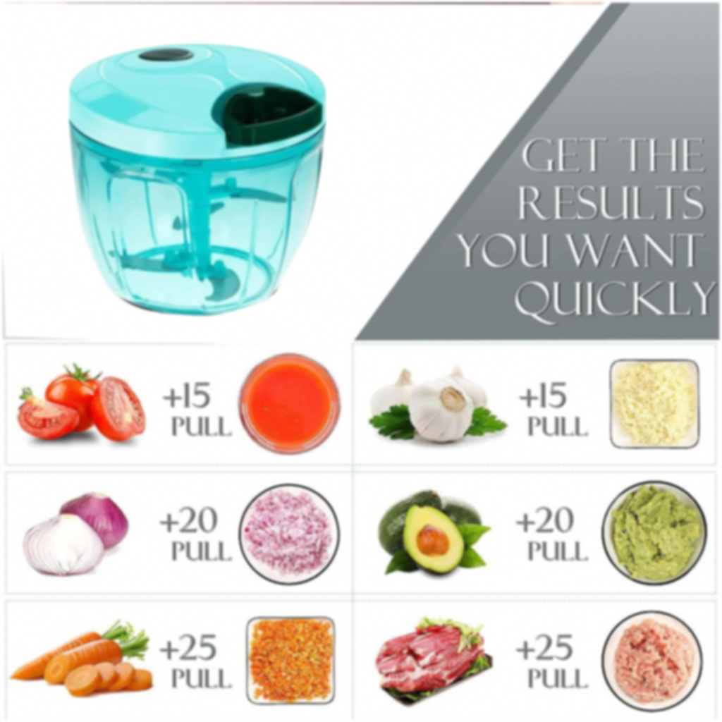 - Save your cooking time: only few pulls, you can chop the vegetables into small pieces!